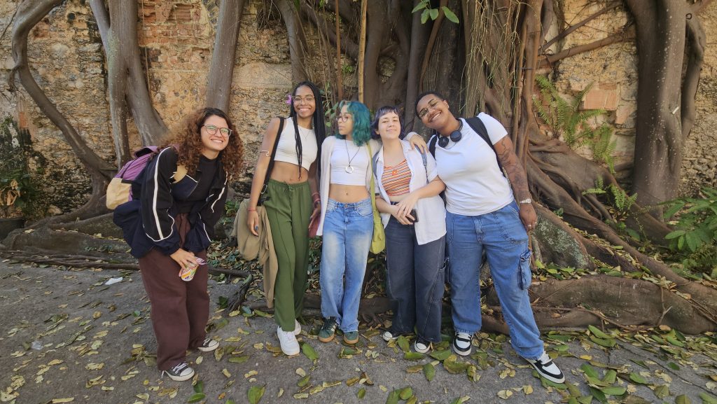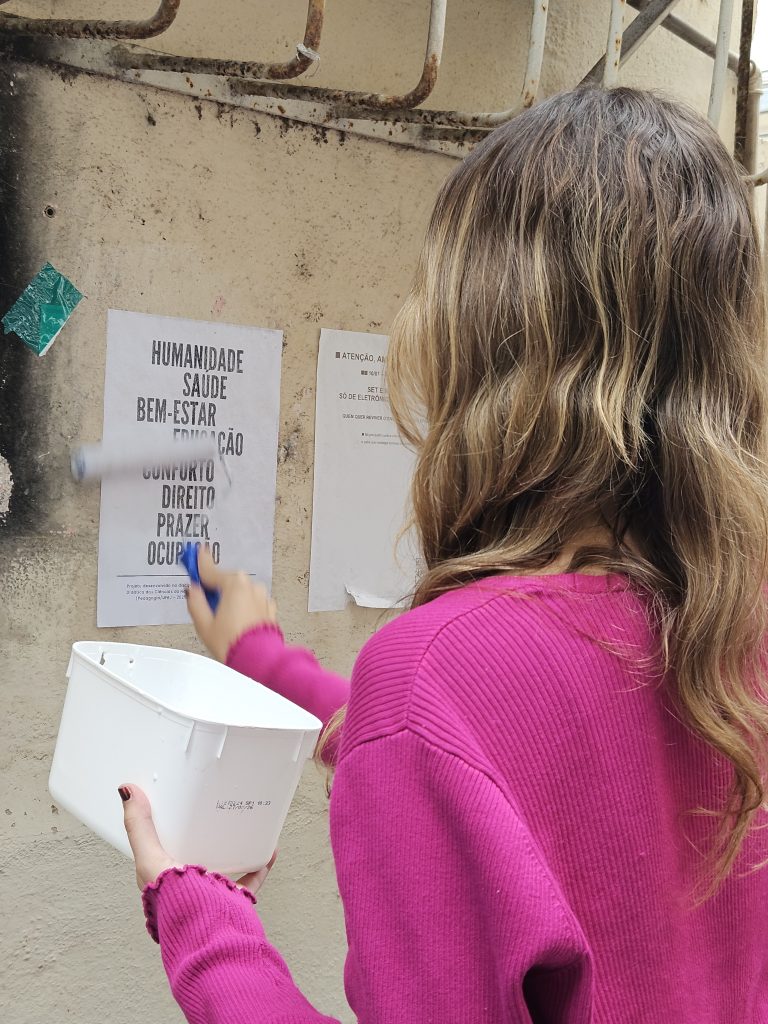 Na semana seguinte, algumas frases foram impressas com um QCode que levava às publicações (uma de cada turma) e mais uma vez fomos ao campus, dessa vez para colar nas paredes, com lambe lambes, os papéis com os QCodes. Frases como “nós somos o começo, o meio e o começo, nossas trajetórias nos movem, nossa ancestralidade nos guia”; “entre raízes e afetos, descobrimos que aprender também é florescer junto”; “Desemparedando a Pedagogia”; “A festa acaba, mas o lixo que você joga, fica”; “não levar nada além de fotos, não deixar nada além de pegadas”; “a natureza não é descartável, não jogue lixo”; “a beleza está nos detalhes” e muitas outras podem ser vistas nas paredes e muros da PV. A ideia é mobilizar a comunidade a respeito das belezas e contradições do nosso campus. Acessem os QCodes! Comentem!