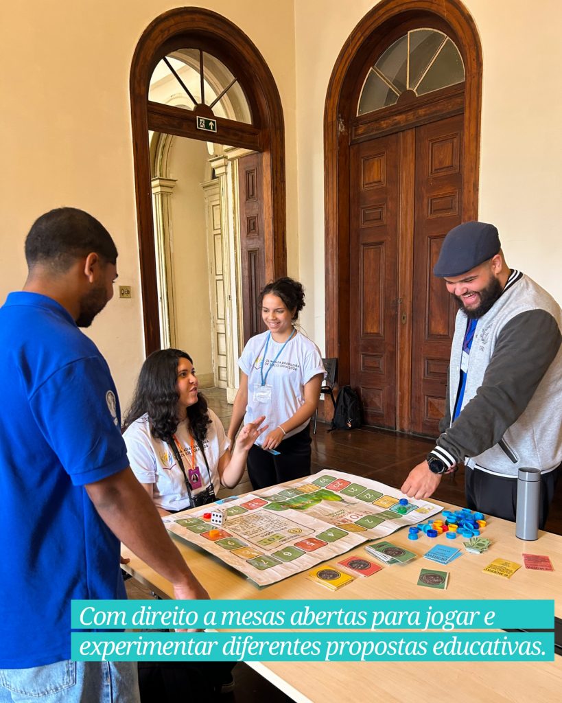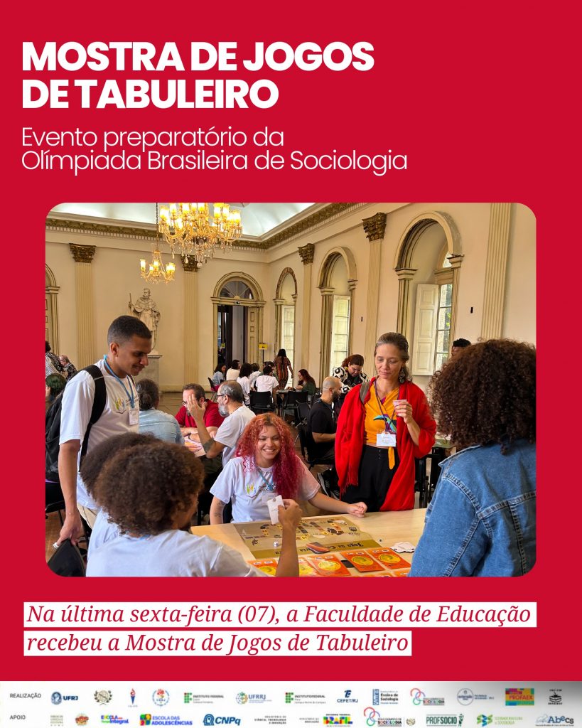 A Mostra de Jogos de Tabuleiro, evento preparatório da Olimpíada Brasileira de Sociologia, aconteceu na última sexta-feira (07/11) na Faculdade de Educação da UFRJ. A programação contou com a mesa redonda “Olimpíadas escolares: experiências na Filosofia e Sociologia” e, após a discussão, o público participou da exposição de jogos, com direito a mesas abertas para jogar e experimentar diferentes propostas educativas.
