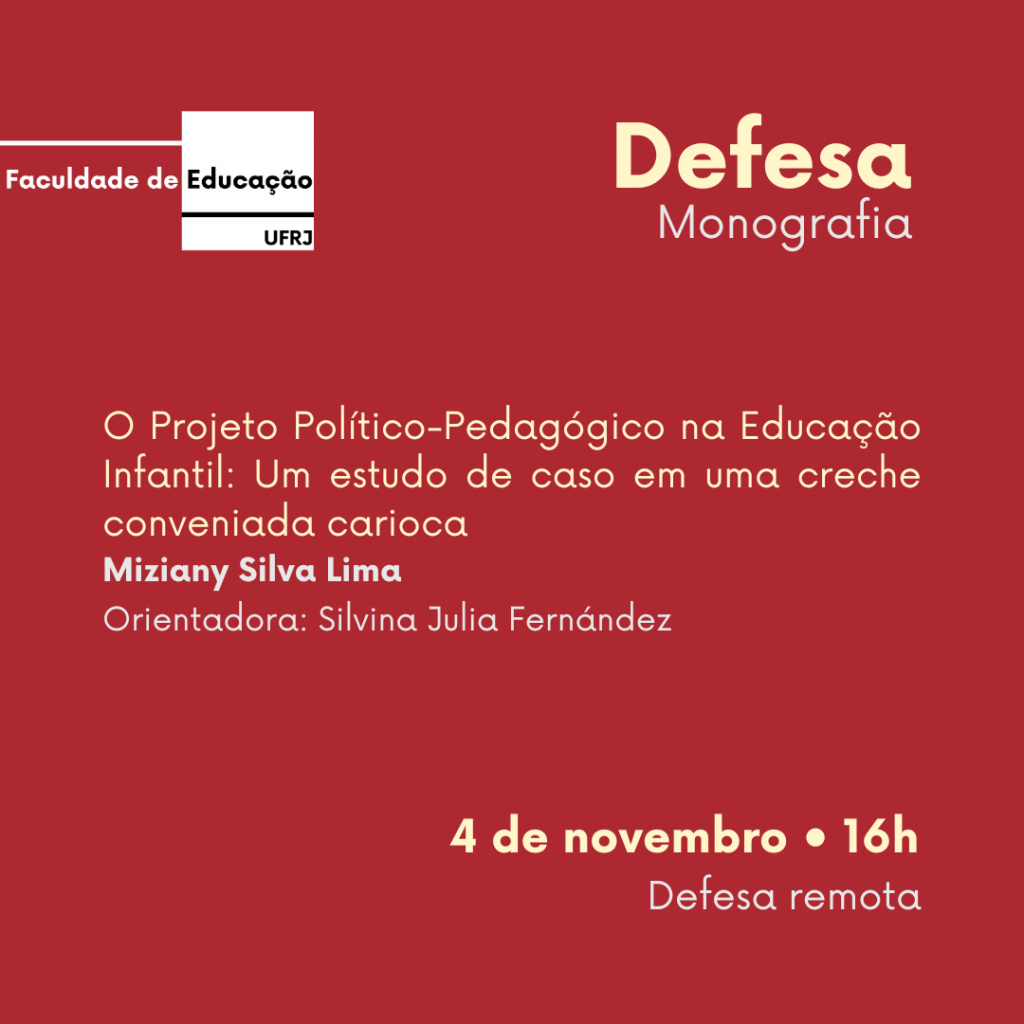 Defesa da monografia: “O Projeto Político-Pedagógico na Educação Infantil: Um estudo de caso em uma creche conveniada carioca”