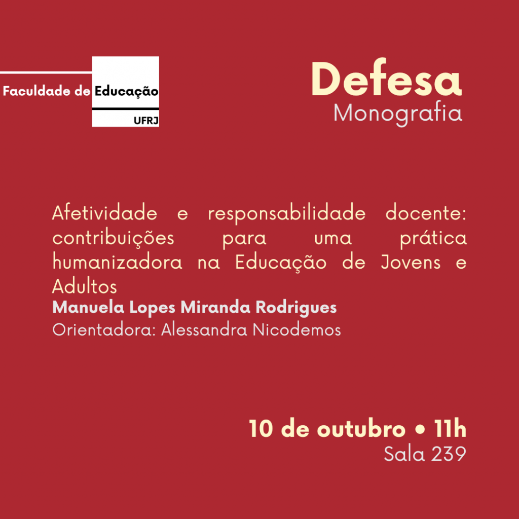 Defesa de monografia: Afetividade e responsabilidade docente: contribuições para uma prática humanizadora na Educação de Jovens e Adultos