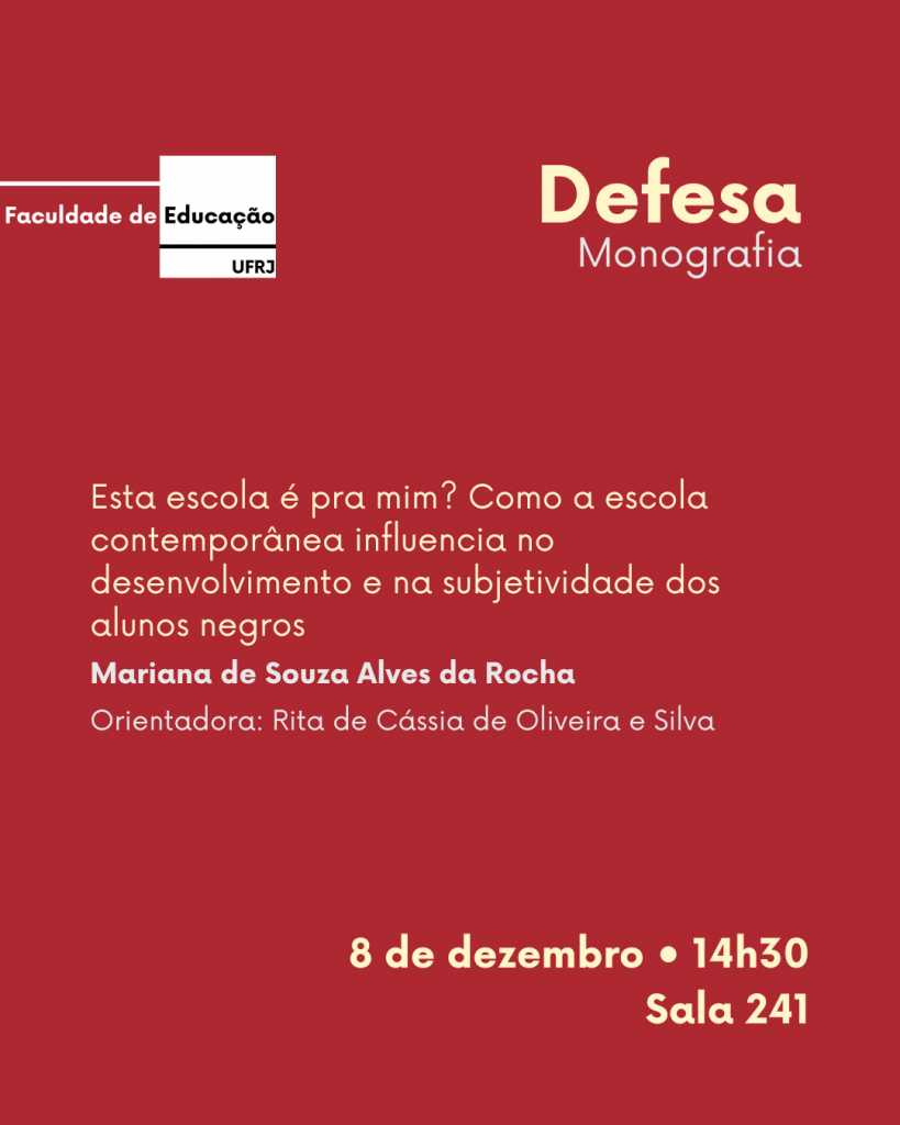 Defesa de monografia: Esta escola é pra mim? Como a escola contemporânea influencia no desenvolvimento e na subjetividade dos alunos negros